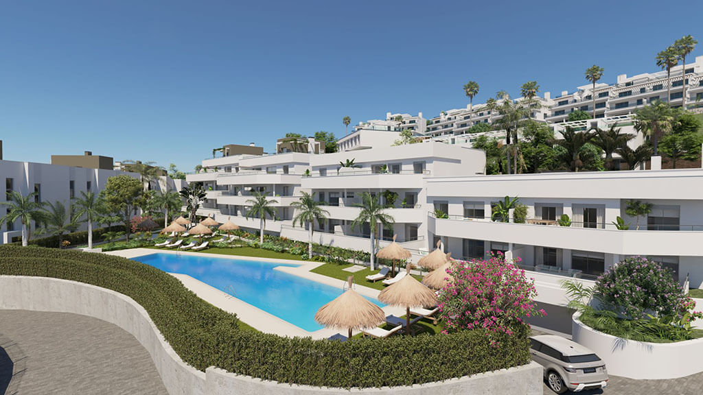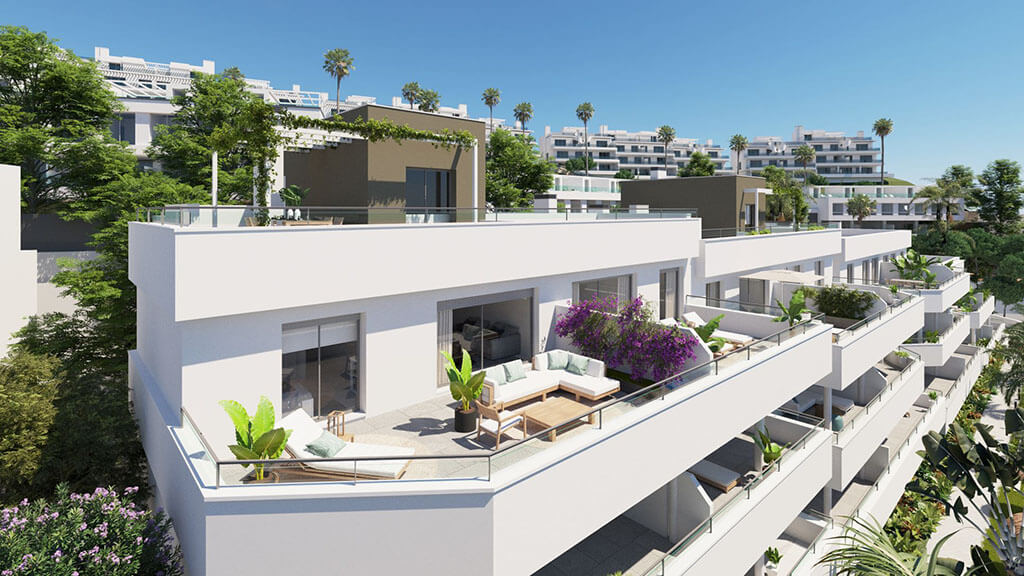 Exclusive 2 and 3 bedroom multi-family dwellings located in the privileged setting of Estepona's Golden Mile. The properties have large southwest facing terraces. This development combines quality finishes, spaciousness in interior and exterior spaces and sustainability, as it has been awarded the DOMUM seal of approval.