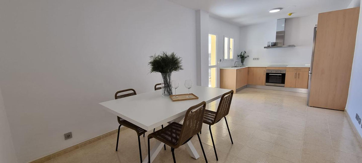 Frontline golf apartments with large terraces and sea views. All the apartments have 2 bedrooms and 3 bathrooms with a nice kitchen and living-dining room. Equipped with built-in wardrobes, fitted kitchen and pre-installation of air conditioning. The urbanization has several communal swimming pools and large garden areas. Located in a quiet residential area next to the golf course and a few minutes from the beach.